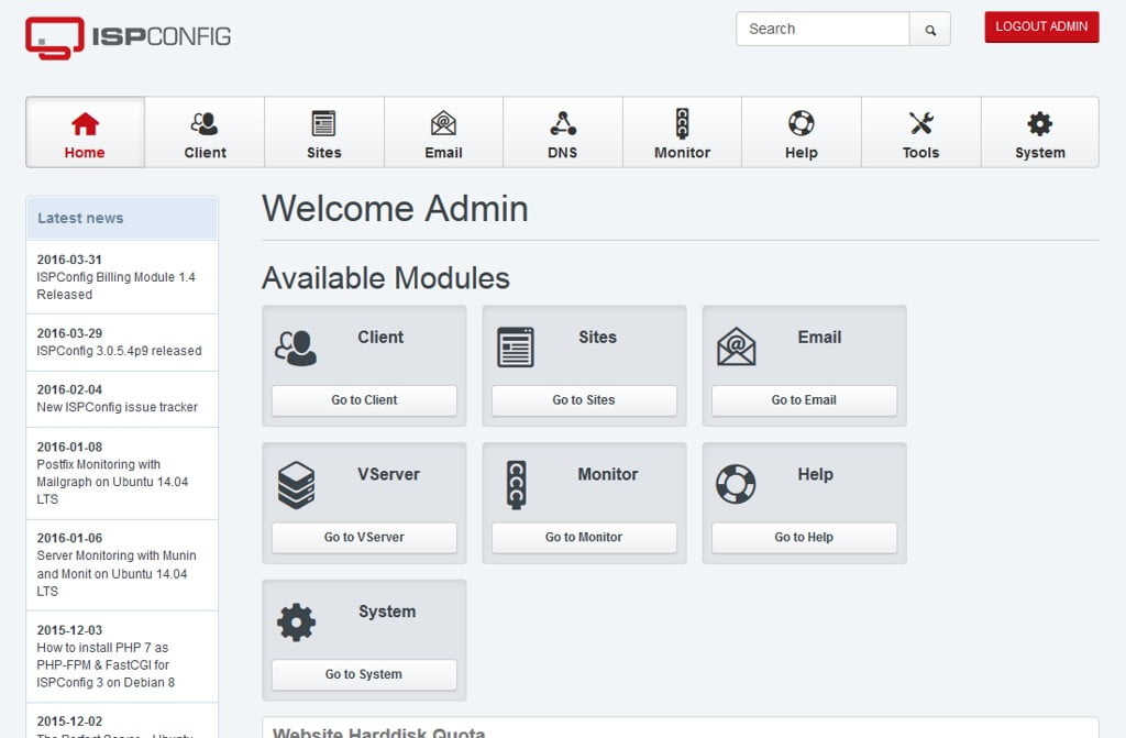 O ISPConfig é outro concorrente veterano no espaço alternativo livre do cPanel e pode ser o azarão desta comparação. Tem cerca de 40.000 downloads por mês. É possível também configurar servidores Web Apache2 / nginx, servidores de correio, DNS, espelhamento e muito mais, como faria com Webmin ou Ajenti.