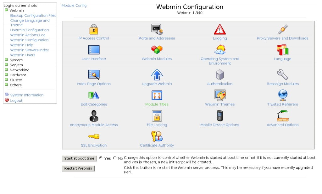 Esse painel de controle pode não parecer muito amigável, mas se utilizar um Tema autêntico isso pode resolver o problema. Os temas são mais amigáveis para os usuários e facilitam um pouco o trabalho com o Webmin.