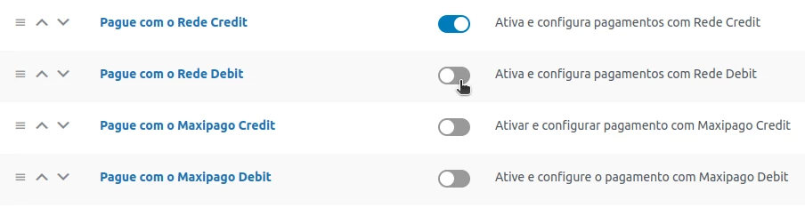 - Ativar métodos de pagamento
