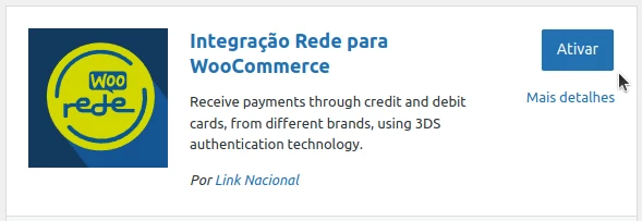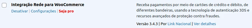 Após instalar o Plugin Rede PRO, é necessário ativá-lo. A opção de ativação geralmente aparece imediatamente após a instalação. Basta clicar em Ativar para começar a utilizá-lo.