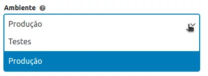 A opção de configuração de ambiente define o tipo de chaves utilizadas na integração. Se as suas chaves forem de Sandbox, você deve alterar a configuração para o ambiente de teste ou desenvolvimento. Essas chaves normalmente são usadas por desenvolvedores ou usuários avançados.