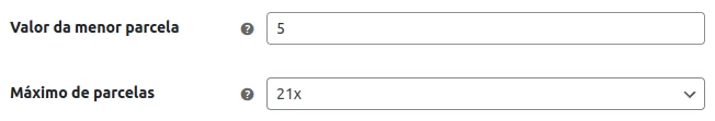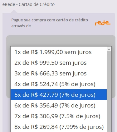 Opções de parcelamento do Plugin Gratuito