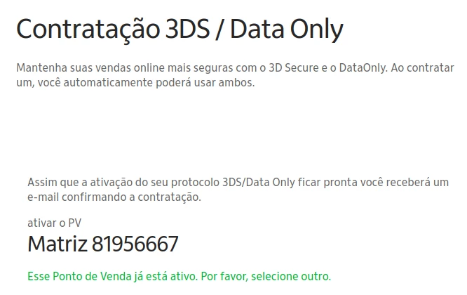 Para Vender > E-commerce > 3DS – Data Only. - Na página de Contratação 3DS / Data Only, solicite a ativação do serviço.