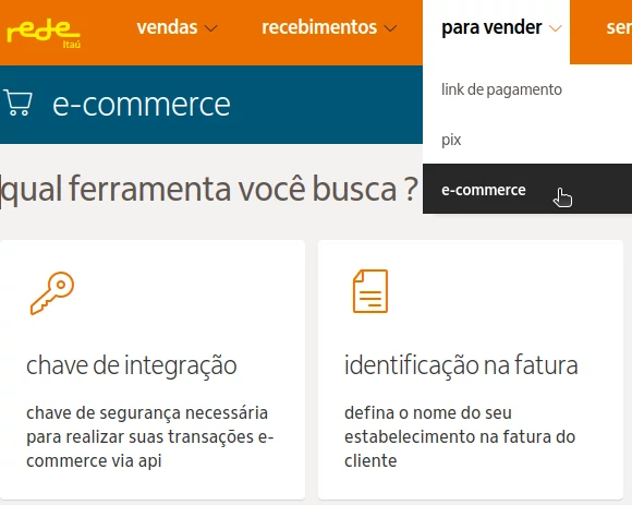 e.Rede > Para Vender > E-commerce > Chave de Integração. - Clique no botão Gerar chave de integração.