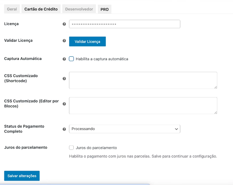 - Atualizações frequentes: O plugin PRO recebe atualizações regulares, mantendo a compatibilidade com o WooCommerce e as últimas tecnologias de pagamento.